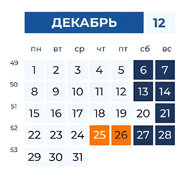 - 24 декабря - работаем до 16.30 (заезд на склад до 16.00)